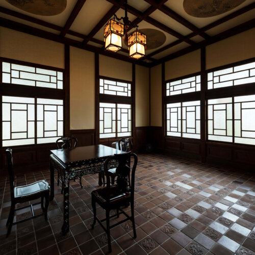 渋沢栄一はこの建築をとても気に入り、 内外の賓客を迎えるレセプションルームとして使ったのだとか。また「晩香廬」の名は渋沢が自作の漢詩 “菊花晩節香” からとって命名したそうで、バンガロー(Bungalow)の字音に当てはめたともいわれている。
