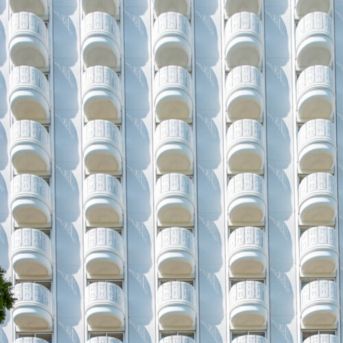 安山岩張りで仕上げられた外観はどこかアール・デコの雰囲気をまとい、内部には渋沢家の家紋にちなんで “柏の葉” がデザインされたステンドグラスやタイルが要所に施され、この時代ならではの職人の心意気の様なものが感じられる。